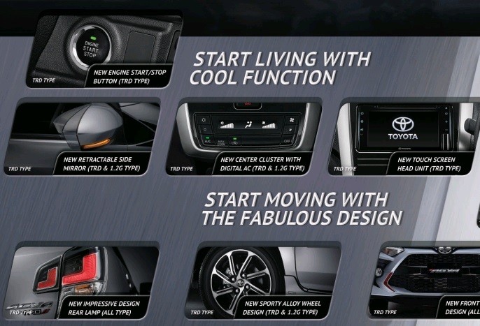 Setir dengan desain baru dilengkapi tombol audio steering switch, dan pada varian GR Sport, terdapat paddle shift serta transmisi CVT yang membuat sensasi berkendara lebih menyenangkan. Jok dengan material fabric premium dirancang agar tetap nyaman untuk perjalanan jarak jauh maupun harian.