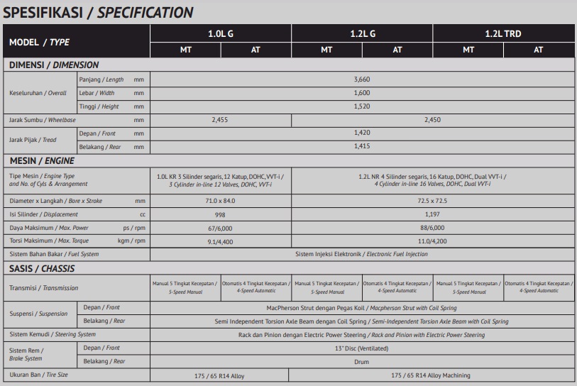 New Agya 1.2 GRS M/T | 252.800.000 |
